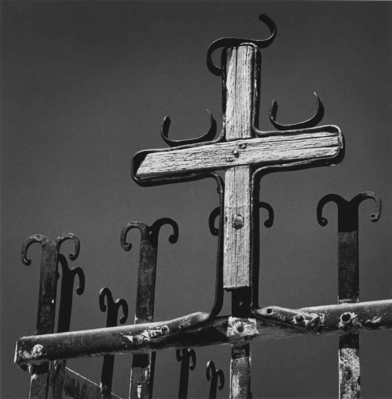 The iconic photo was taken by Ansel Adams. Your photo is missing a piece of iron ( ribbon) on the top. I do not know the place this cross is located. I guess it would be one of the missions around San Antonio.