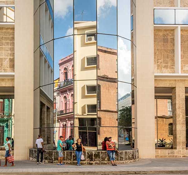 Isaac… I went to Cuba couple of years ago and never came across a modern glass building. The reflection of Old Cuba in the image is seeing the old with the new. The people look like they have been waiting a long time for the bus and adds a human element and sense of scale. Including the woman in the composition is a good idea as it creates an odd number to the group. I offer a flipped version where the woman is facing the camera and straightened the verticals in Camera Raw. |