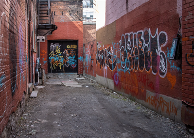 Bill, nice perspective and interesting elements of the fire escape anchor the far end of the image and provides a point of focus. I like the grittiness of the road and the touch of black which anchors the scene. About the crop- I would suggest that the crop even further to the left and bottom to clean the right bottom edge- this serves to bring the end back wall as a focus point and place on the thirds and enhances the composition. Hope you are enjoying your new camera. |