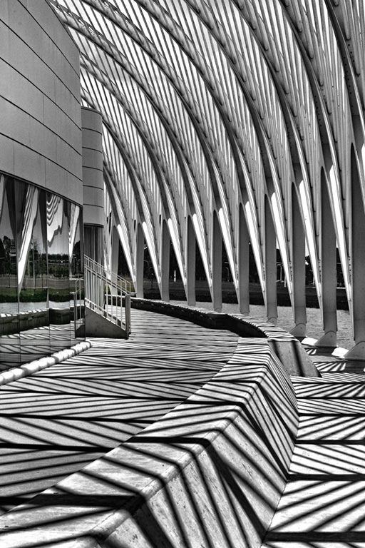 Both images work well, but I do prefer the color version. The greens are nice and subtle, but I would have enhanced the reds using "color balance, red" in Photoshop.The pattern is great and I'm pleased that you chose to show it off center. |