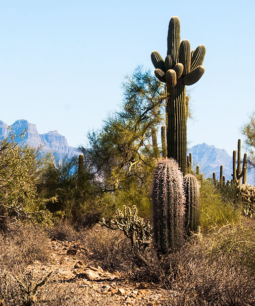 The cacti on the right are great. But I think the bald sky has let you down. You could clone a sky with clouds from a different image, or darken the sky considerably more. A vertical crop will also help to get rid of many of the distractions. |