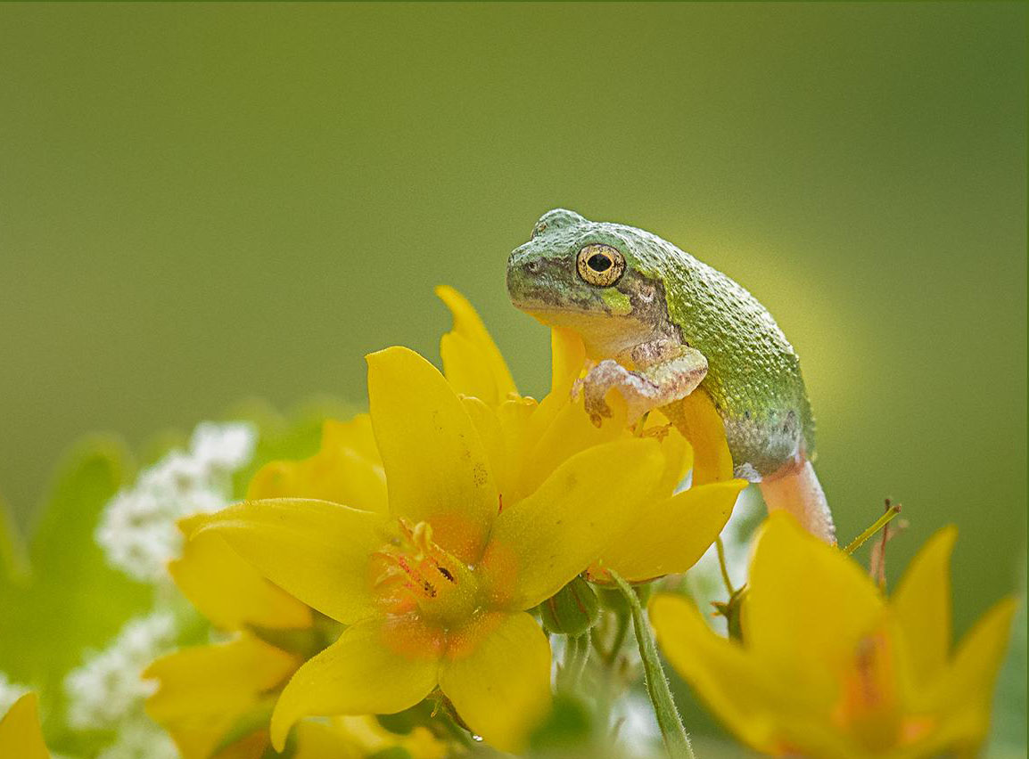 Donna, I know that you don't like to crop your images. My suggestion here eliminates the distracting out-of-focus branch ans some of the left side. My eye is now firmly focused on the frog which is quite magnificent, and shown off so perfectly against that lovely background. |