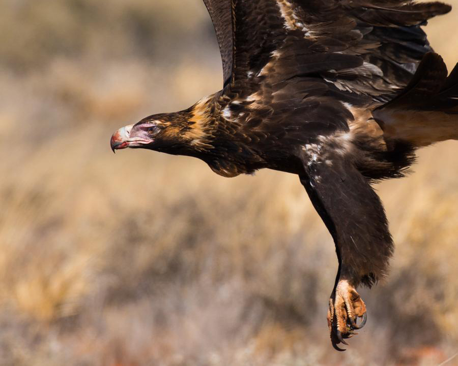 The eagle is tack sharp from beak to talons and stands out perfectly from the out of focus background. I personally would prefer to see the entire bird. As a portrait, I would crop out most of the wing, which would place the head and eye in the upper third of the frame, and concentrate our attention on the head, eye and talons.