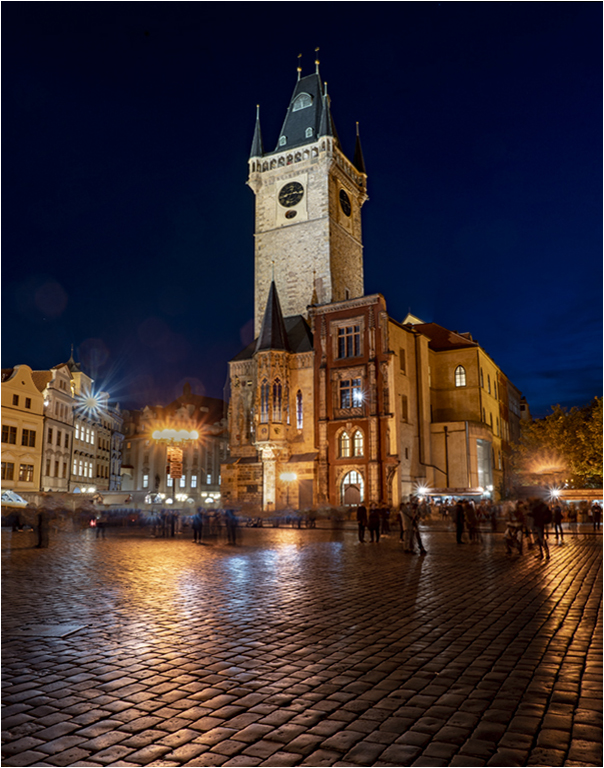 Good job for not putting away your camera on this rainy day. The cobblestones have more interest when wet and pick up reflections of the lights coming from the buildings. The slight crop on the bottom does improve the composition. |