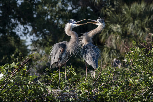 I cropped to a vertical, darkened the background using "multiply" in the history brush( about 35%), added brightness to the eyes using the radial filter in camera raw. Sharpened in Topaz Sharpen AI. I decided not to remove the branch in front of the left bird in case I enter into the nature division. |