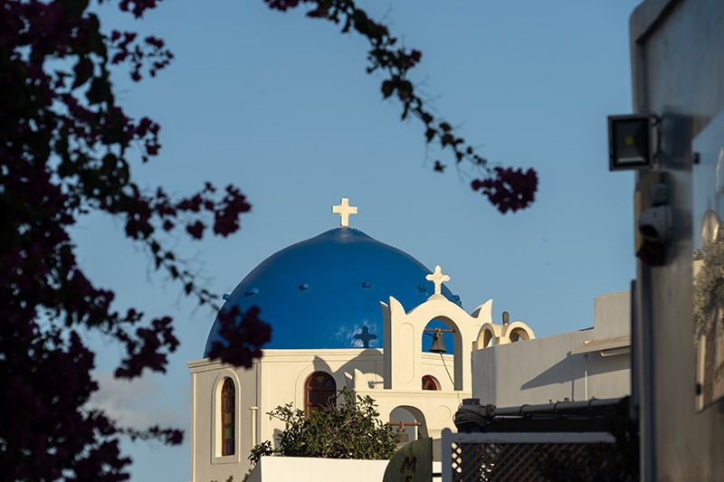 Hi Don, Thanks for visiting our site. The paths and sidewalks on Santorini are are quite narrow, with buildings on each side. In the late afternoon it is particularly crowded. So to step backwards I would have included more of the surrounding buildings which I did not want. Here is one with more surrounding distractions and less emphasis on the bells and their shadows. |