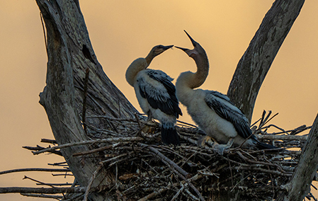 Here is my original crop. However I felt that the bright sky to the left and right of the nest draws my eye away from the chicks. Which crop do you prefer? |