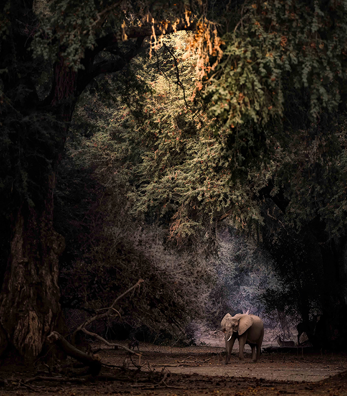 Enlarging the image I find the elephant rather grungy. Not sure if that is your intent. I used Topaz Photo AI to denoise and cropped some off the top to add more emphasis to your elephant. I think the mood is still captured in this presentation. Its ok if you don't agree with me! |