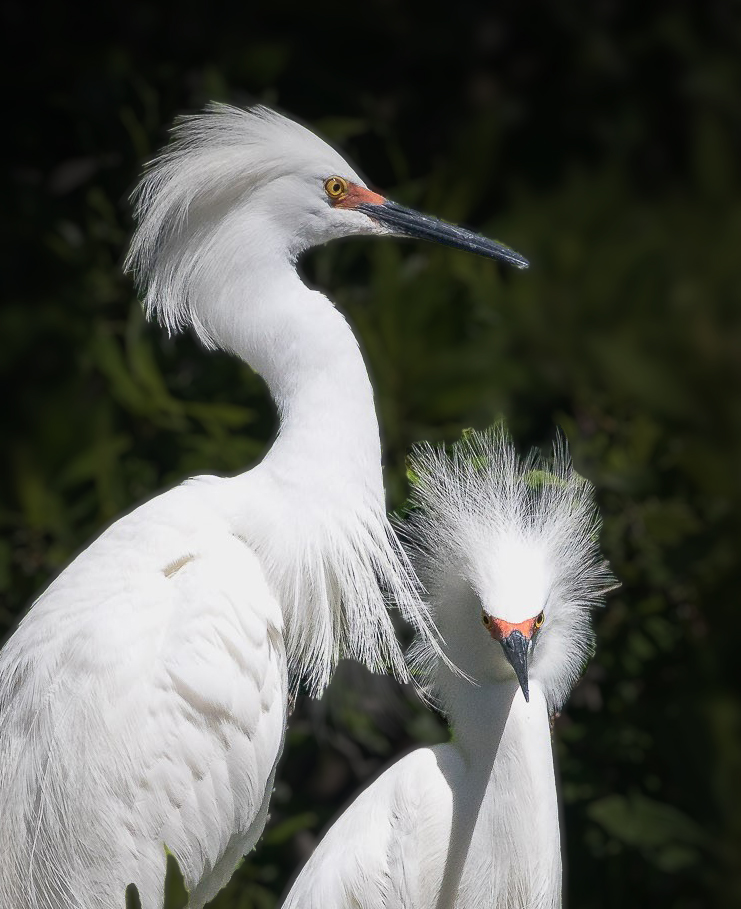 I agree with Bruce. The problem is that the birds are posed beautifully but the background is a distraction. I thought it may look better as a closeup. I cropped the birds and darkened and blurred the background. You caught them beautifully with a very sharp image, I think it shines up close and personal. |