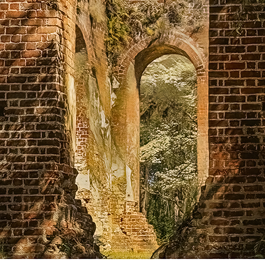 I also like the lines, the leading path, tones and textures, but I found that the main focus could be the walk through the wall, archway with what appear to be mountains in the background. To that end I am suggesting a very different crop. let me know what you think. |
