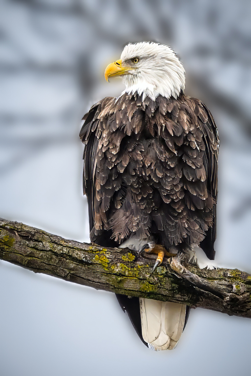 Great Regal Eagle. I agree with the blur but think the tree is still distracting, so I added a little more. It is sharp but I used Topaz to tweek slightly in order to accentuate the eye. Nice shot and $1,000,000 pose. |