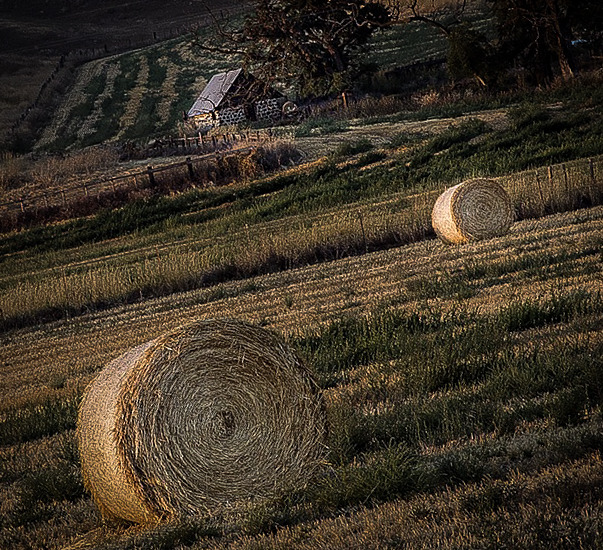This is my version of two bale and a house - see attached. I would also think about trying to make the rest less prominent. Maybe desaturating it or darkening. I haven't tried that but would think about it if that would be my image. |