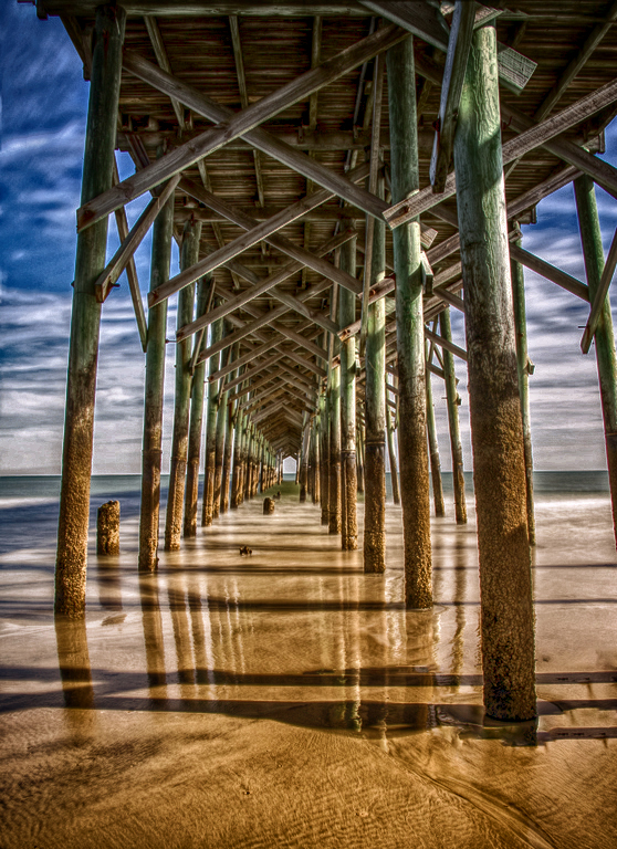 Very nice subject, Georgianne. I like your altered version, but the original is really nice too. I love the texture in the sand in the original and the color variation between the blue/green at the top and the brown at the bottom is very appealing to me. So I tried a version in Nik HDR, then to On1 for Dynamic Contrast, and finally Nik ColorEfx BiColor filter to ramp up the color contrast between the sky/pier and the sand. Yours is more altered and creative though, so well done! |