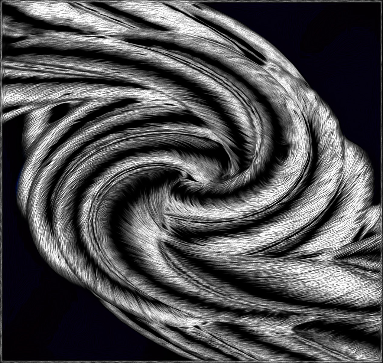 It looks like you had a good time tweaking this image, Helen. I like the B&W treatment and the fact that you didn't go overboard with the twirl effect. When I first saw it, it seemed like a good candidate for the Solarization effect in Nik, so I gave it a try. Still wanting to play, I took it into On1 for HDR and Glow filters, and finally in PS I used Oil Paint. It doesn't look like a coil after my playing, but I had a good time! I like the pinline border you put on it too. |