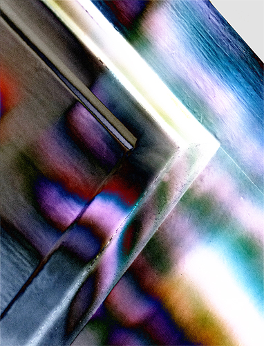 When I first saw your image Helen, I thought it'd be fun to use a solarization filter on it. So I did that in Nik and then took it into On1 for Glow (Radiance Glow) and Texture (Cracked Earth). I like the diagonal lines you used and you did a very nice job of capturing the prism colors. I have a similar thing happen through my front door window and sometimes there are huge prism effects on my walls, but when I take photos of them, they lose something in "translation." You captured the light very well and created a nice abstract. |