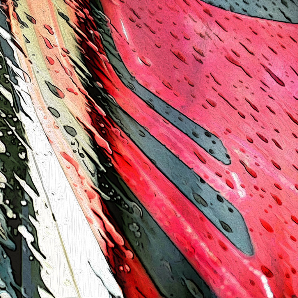 Love this Fran! Either one of your originals would make a cool abstract, minimalist Art Photography image. Combining them into one worked well too. I'm more drawn to the left side of the piece because it's more in focus than the right side. Sometimes I use PS Poster Edges to "sharpen" a blurry image, so for fun I gave it a try here. It was a little harsh, so I also gave it a subtle Oil Paint Filter. I like the way you made the direction of the water match the red/black lines. I would say you accomplished your goal very nicely! |