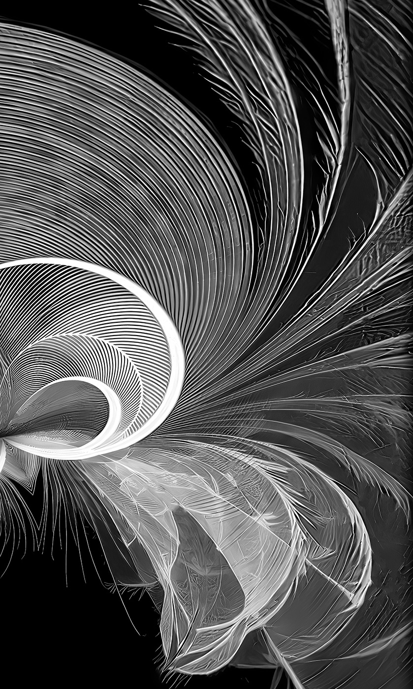 Very nice abstract Gunter. Your original image is stunning. The thing I like the most about your original is the black background and white feather, so I took the liberty of inverting your image to see what effect it would have. What do you think? Lots of interesting lines and shapes to see in this image. Nice job! |