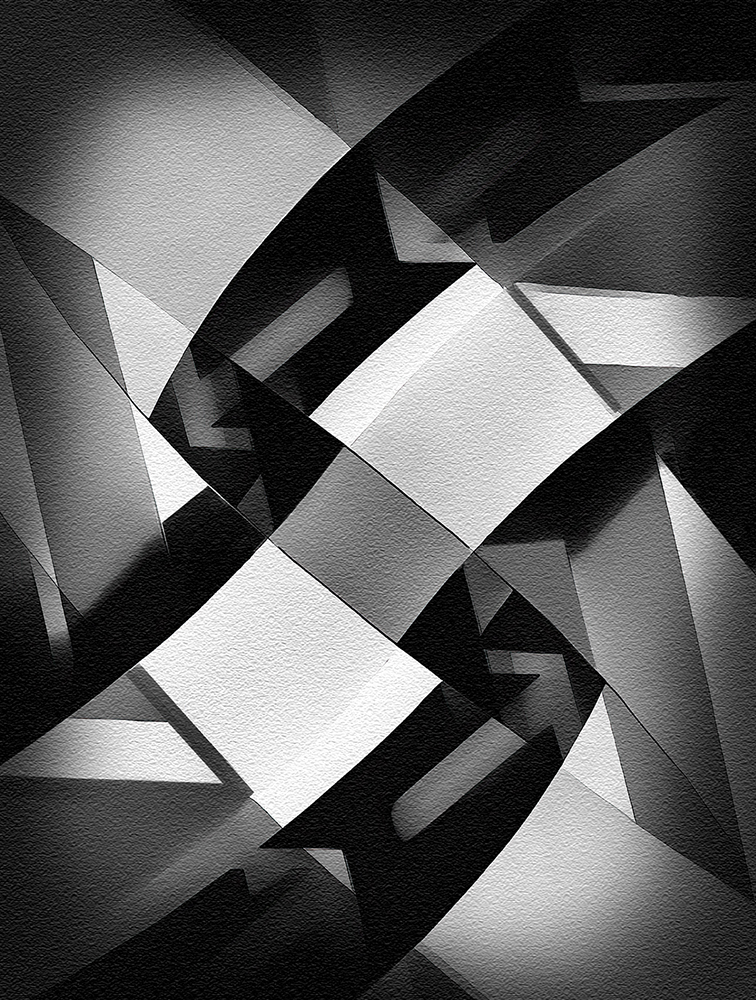 This image is so very interesting Gunter. It gives me a feeling of "good chaos." The broken up arrows going different ways, the multiple shapes and shades, and the (almost) mirror quadrants make it a very nice piece to study at length. It looked like a really fun image to "play" with, so I had a go with it. Some of the edges of the shapes got distorted with the Mirror program and most of them looked good, but the rectangle in the center, not so much. So I cloned out those artifacts. Then I added a vignette to bring more attention to those cool arrows. Lastly I added a sandstone texture in PS to give it a bit more "artsy" look. Forgive me if I've altered it beyond repair -- but I had fun trying to give it a slightly different spin. You had a great vision for creating your abstract from a very nice original. |