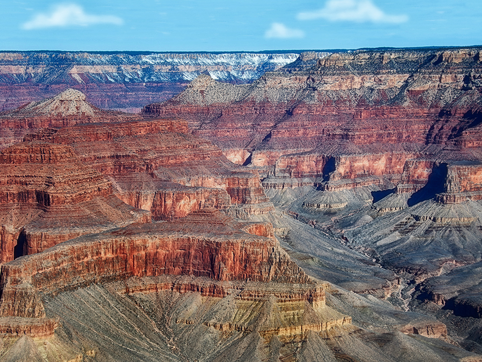 I like Denise's edits, which give the image a more realistic quality. I'm probably off base here, but I kind of like that green band of vegetation and some sky to bring more depth to the whole scene. There needs to be more sky though, so I enlarged the top and cloned in more blue. Then added some clouds (which, I admit, don't look realistic but you get the idea) to expand the horizon. I made some of the same edits as Denise -- contrast, exposure, clarity, vignette. Just a little different perspective on the beautiful scene you captured. |