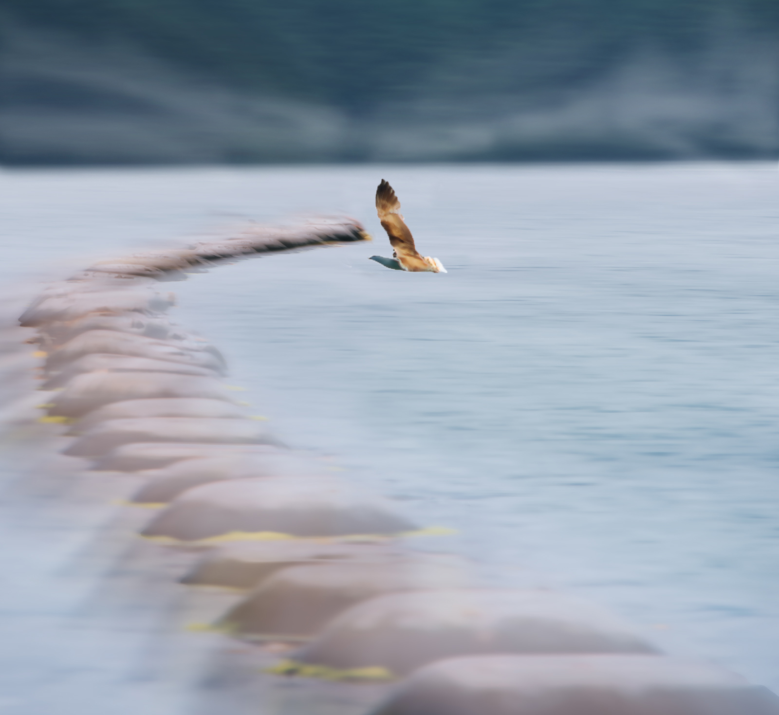 Nice image Mary. I like the high key effect; it makes the scene seem ethereal. It seems to me that the shoreline gives some context, but perhaps cropped a bit lower would bring more emphasis to the mussel pots and bird. To my eye, the bird is too close to the leading edge of the mussel pots, so I moved it a skosh. I liked Georgianne's version of the lower crop, and it made me think of a foggy shoreline, so I had a bit of a play to see how it would look. Your processing is lovely and it looks like a serene and amazing place to visit. |