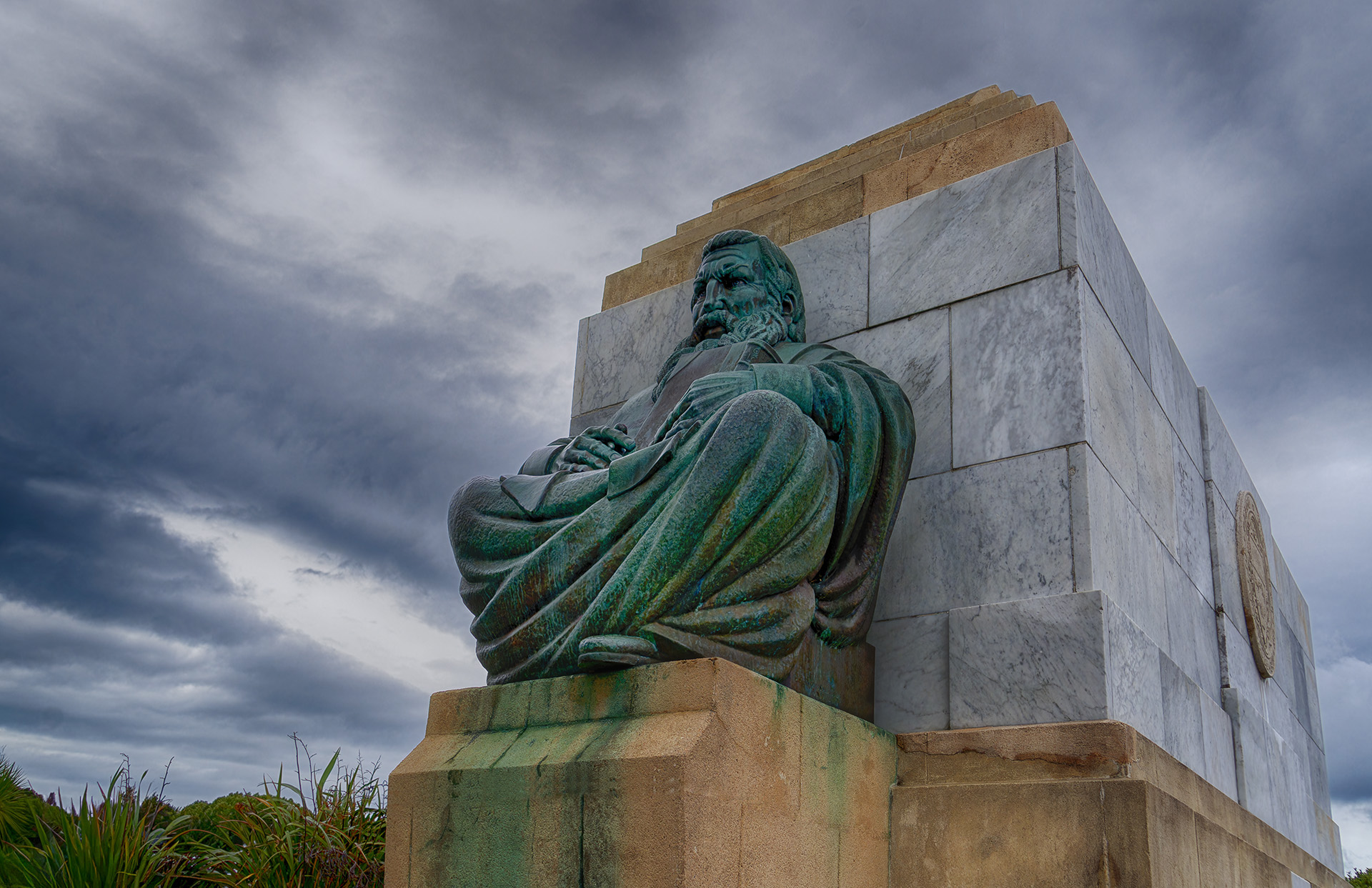 You did a really nice job of removing all the distractions and bringing out the details in the main subject. The colors are nice too. The various vertical lines of the stones are good, but for some reason the strong, off kilter horizontal line across the center stone under the figure seems strange. I got rid of it by using the spot healing brush and then straightened the left vertical edge by selecting that area and then using the transform > skew tool. I then had to use the clone tool to add in some of the bushes up to the new edge. Probably overly nit-picky on my part, but I'm including the result for your perusal. |