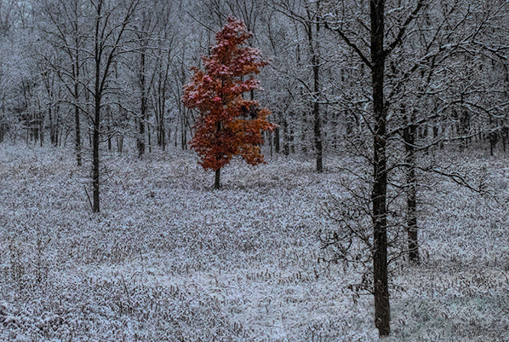 A pretty winter scene. In comparing the revised vs original version, it's obvious that your adjustments really made a significant difference. The revised version brings out the color and contrast much better. Upon close examination, the red tree appears fuzzy. I like your composition. As an experiment, I also tried a version where I cropped in much closer to the red tree. To me, this gives you a couple of different looks from the same vantage point. |