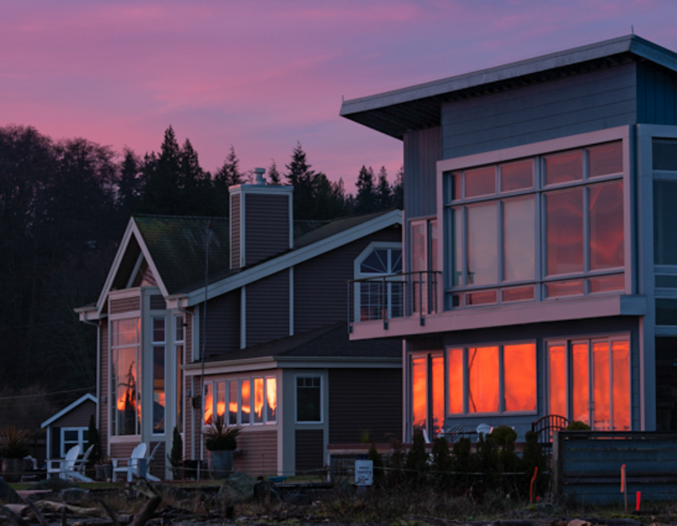 I actually liked the vibrant reds shining in the windows and the pink sunset in the original. I also don't think you'd lose anything by cropping out the building on the right. I tried it to see what would happen. See what you think. |