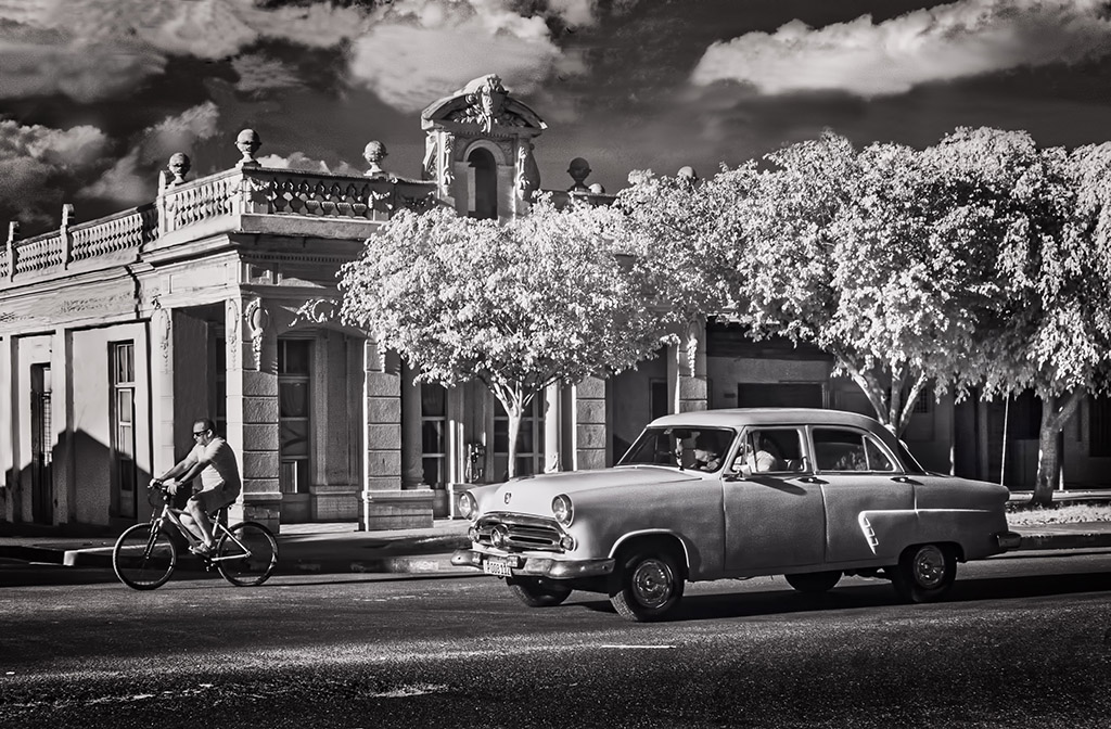 What a beautiful old building set in among the trees. Perfect subject matter for IR. Your conversion and tonality are great and in keeping with the subject. You say that finding a vantage point was difficult, so we have to live with the tree trunk. Oh how I wish you were able to move to the left, cut out the tree and get more of the structure on the left. C'est La Vie!