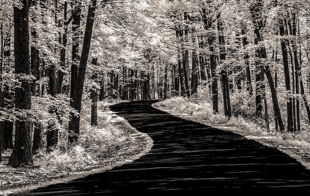 Chuck, A perfect subject for infrared. I love all the striations on the walkway. It seem a little saturated to my eye. I offer a slightly de saturated version |