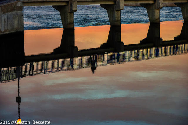 Prise du pont traversant le canal Rideau, cette photo du Centre des Congrès d'Ottawa en longue exposition est bonne. Je ne connais pas l'heure où la photo a été prise mais elle aurait été beaucoup mieux à l'heure bleue ou dorée. J'aime bien les traces lumineuses des voitures car le tracé rouge donne du mouvement à l'image. Le coté droit de la photo pourrait être plus lumineux et permettrait d'apprécier le reflet dans le verre du bâtiment. |