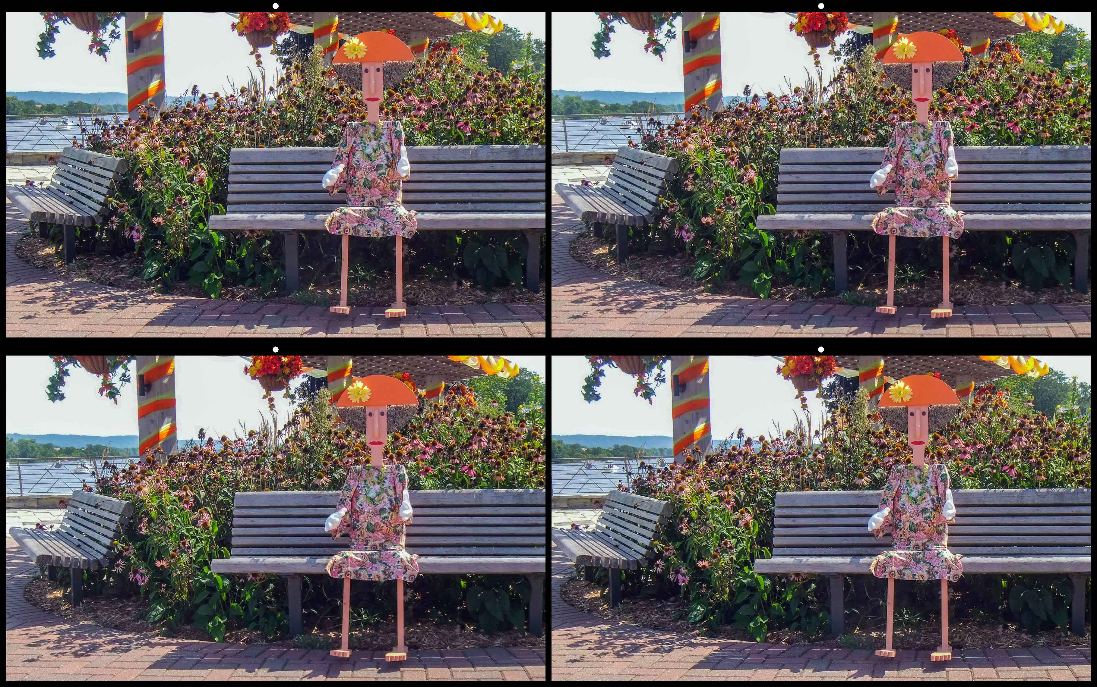 These are sure funny whimsical big tree sculptures considering what the branches hold. Don't think I'll do this when remodeling our bathroom though. As already mentioned, it is too bad the tree in the right background merges with the front one but the installers didn't think of us photographers...in our case 3D helps by providing some distance separation. |
