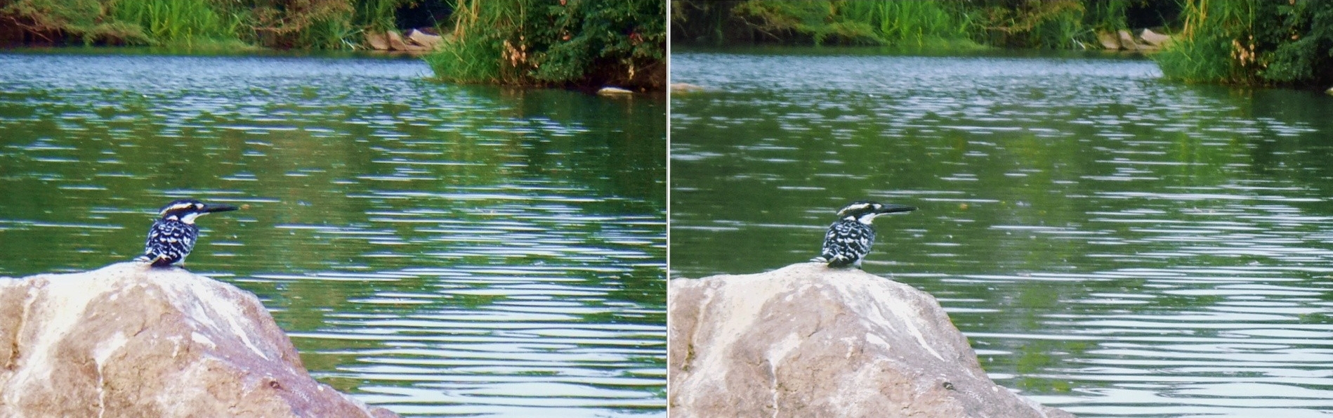 This is a nice, restful scene. The bird is well captured, and is positioned well, but the window is misplaced. The window is in the middle ground, which places the rock and the bird in front. I took the liberty of changing the stereo window so that the front of the rock is at the window.