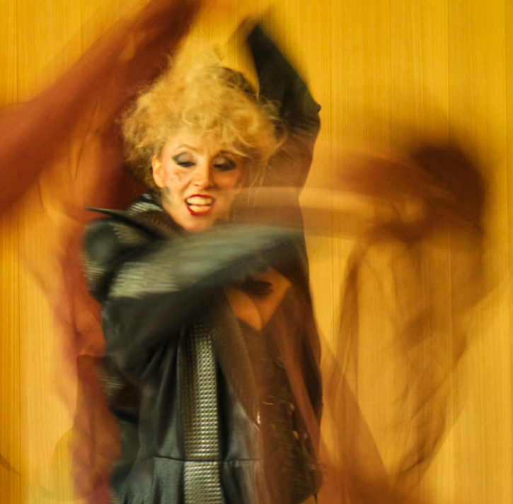 Living in a retirement community, i thought those industrial tanks might be some sort of oxygen tanks and the energy of her dance told me a very compelling image. Maybe just including the hose from the tank to her would a weirdly wonderful story. But she is fabulous without the tanks.It is a very fine image with magic light movement and...?? even more for sure. Wonderful |