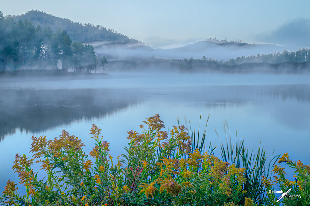 What a beautiful moment you have captured! I'm enjoying the details within this placid scene . To bring out more of them in the trees perhaps tweaking the exposure might allow us to see them more easily. THe layers of triangles tie the elements of the image together successfully and the well focussed goldenrods in the foreground are really stunning. |