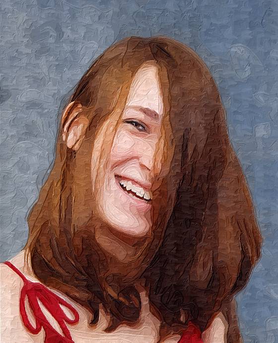 I find the initial processing works well, removing as it does the extraneous background, leaving the focus on the face. Likewise, I find the painterly effect is artistic, with well resolved facial features, but a periphery of coarse strokes which complement the initial processing in concentrating the focus on the face.