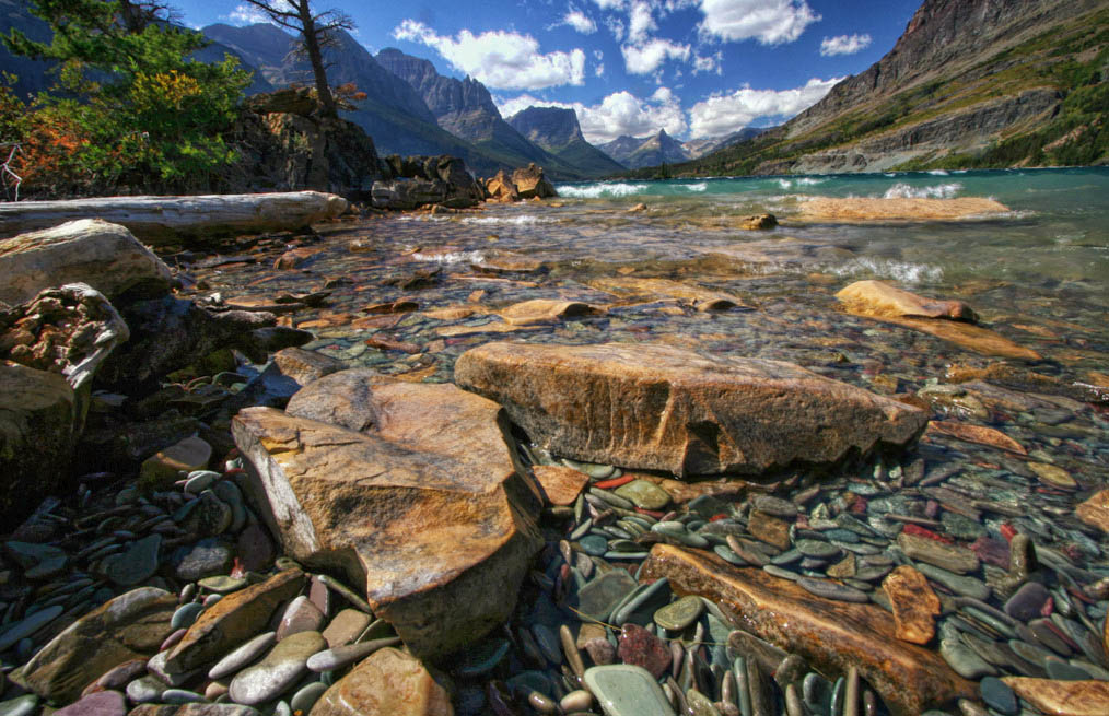 the color effects CS4 lets you separately adjust light in foreground mid and background. this is very subtle. You might want to put a little more shadow in foreground under two large rocks. Direct the eye to follow into the mountains in background. The light on the large rock in background pulls your eye into image. |