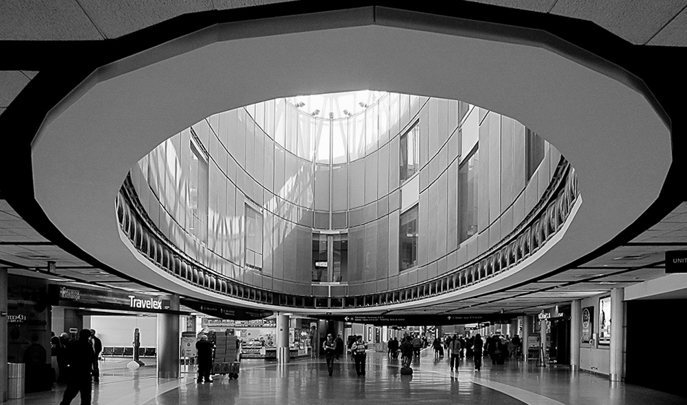 Considérant toutes les lignes de perspective, les plans, etc... cette image pourrait aussi être traité en monochrome.