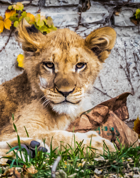 I agree with all your comments. Unfortunately, this cub was hiding behind an very ugly plastic covered post. I had no choice to crop the tail off. He was playing with a dark piece of cardboard when I captured him in action. Maybe I should have cropped even further to isolate his front half only. |