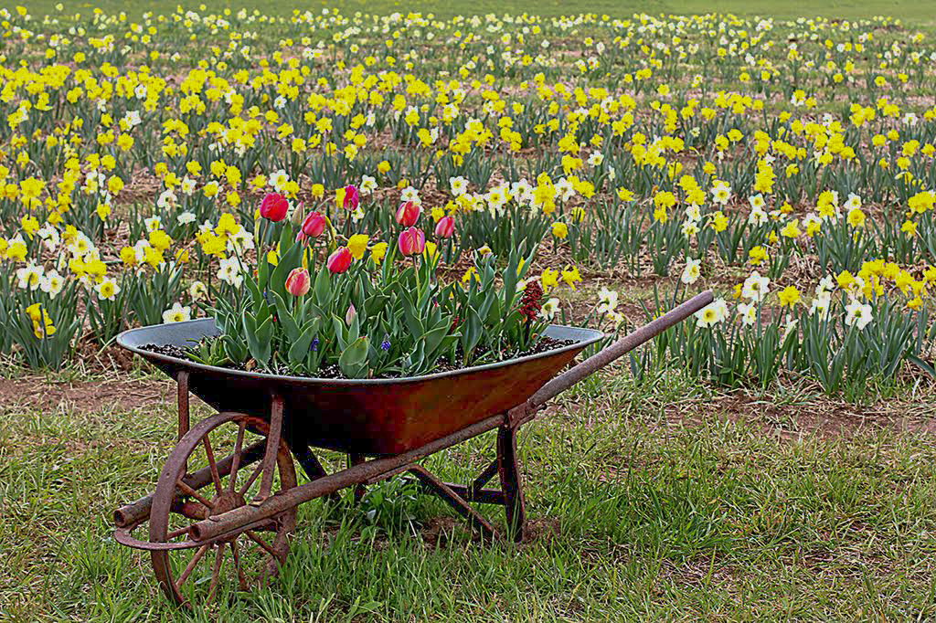 J'aime beaucoup la mise en scene mais je trouve que les tulipes blanches et jaunes en arrière plan sont trop éclairées. J'ai ajusté en diminuant l'exposition, et j'ai diminué les noirs et les ombrages.