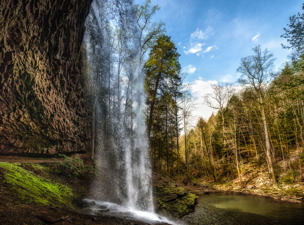 I was able to obtain a more vertical waterfall by adjusting the vertical to -40 on Lightroom. Still not perfect but I think a little better.