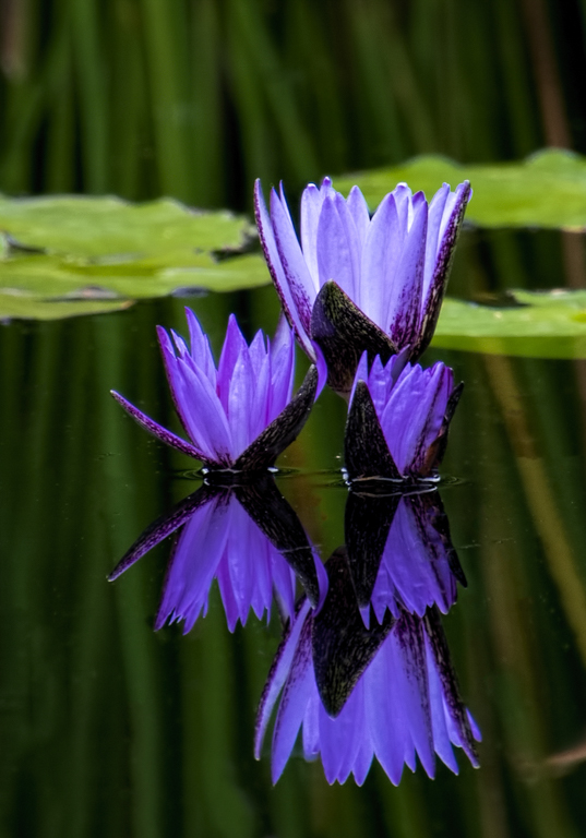 I agree with Geoffrey. If your capture included more of the left side, I would open up the left side and crop the right side a bit. The taller flower on the right and smaller on the left (and their reflection) would act like an arrow pointing to the left (similar to following the gaze of an animal or person) (strong guiding lines). |