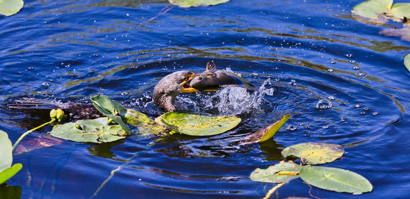 Great action. Very sharp. This is quite a big fish to swallow for a cormorant! In the opposite direction of Dean, I would decrease the cropping on the top right.... I would also decrease the shadows and mid tone. (I would have cropped more on the left but did not want to cut off the tail of the Cormorant....) |