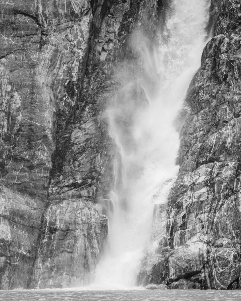 I also took the liberty to work with the B/W version. I found yours too dark, although it really shows the texture of the rocks by the falls. Here is what I came with: |