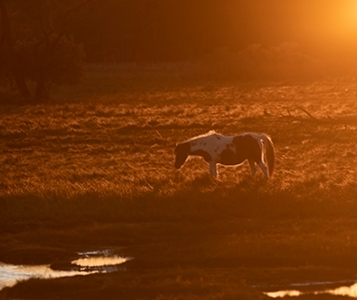 Lovely horse backlit during the "orange" hour.