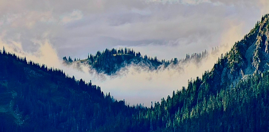 I was wondering if you could have walked a little farther, so the first left tree could have been your anchor and the right tree would not be in the scene...(a little behind you).