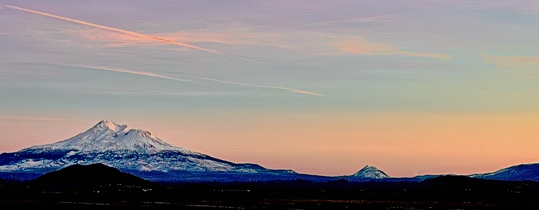 This is a Beautiful sunset landscape. I like the positioning of the mountains. The image does not appear slanted. It looks like you applied the rules of 1/3rd, with the top of the left mountain on the top of the lower 1/3.