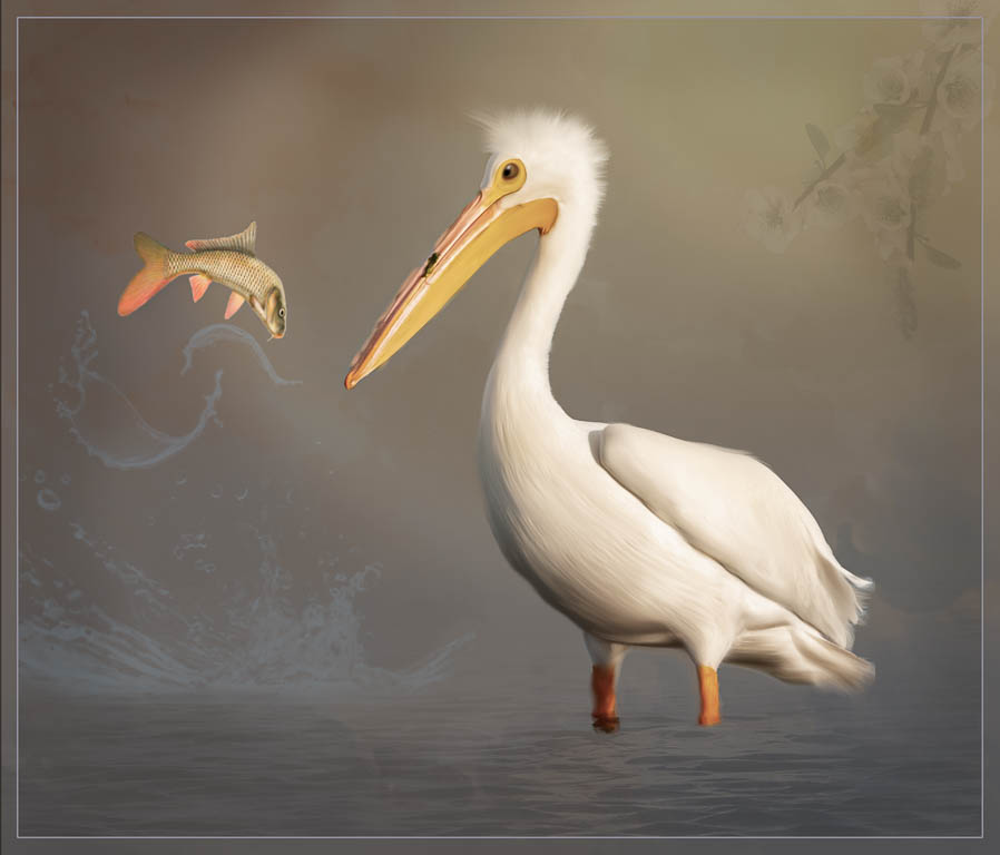 The only thing I might suggest is that you might want to add a shadow behind the beak as it comes out of the frame. It will add a bit of dimension to your art and make it pop off the page. |