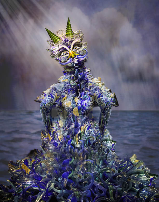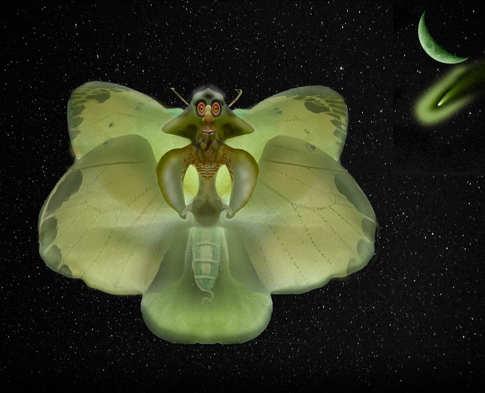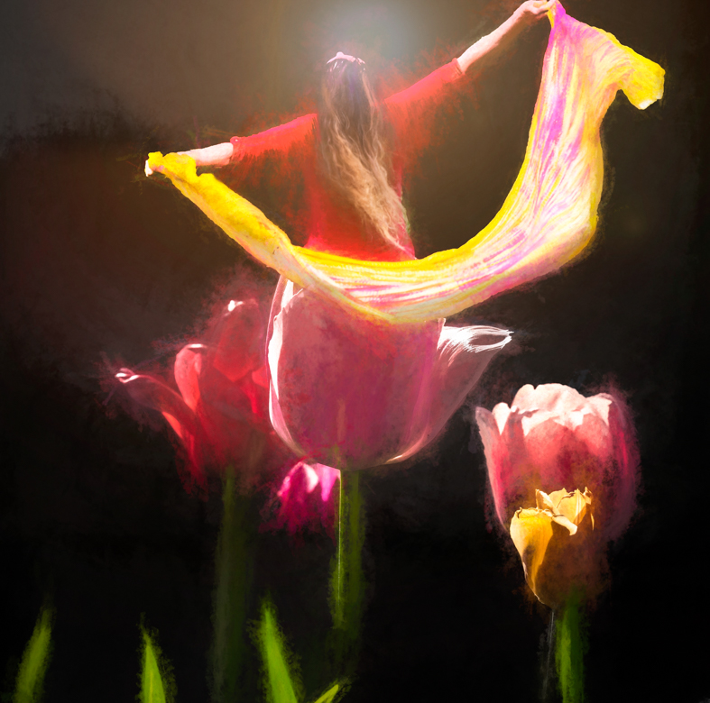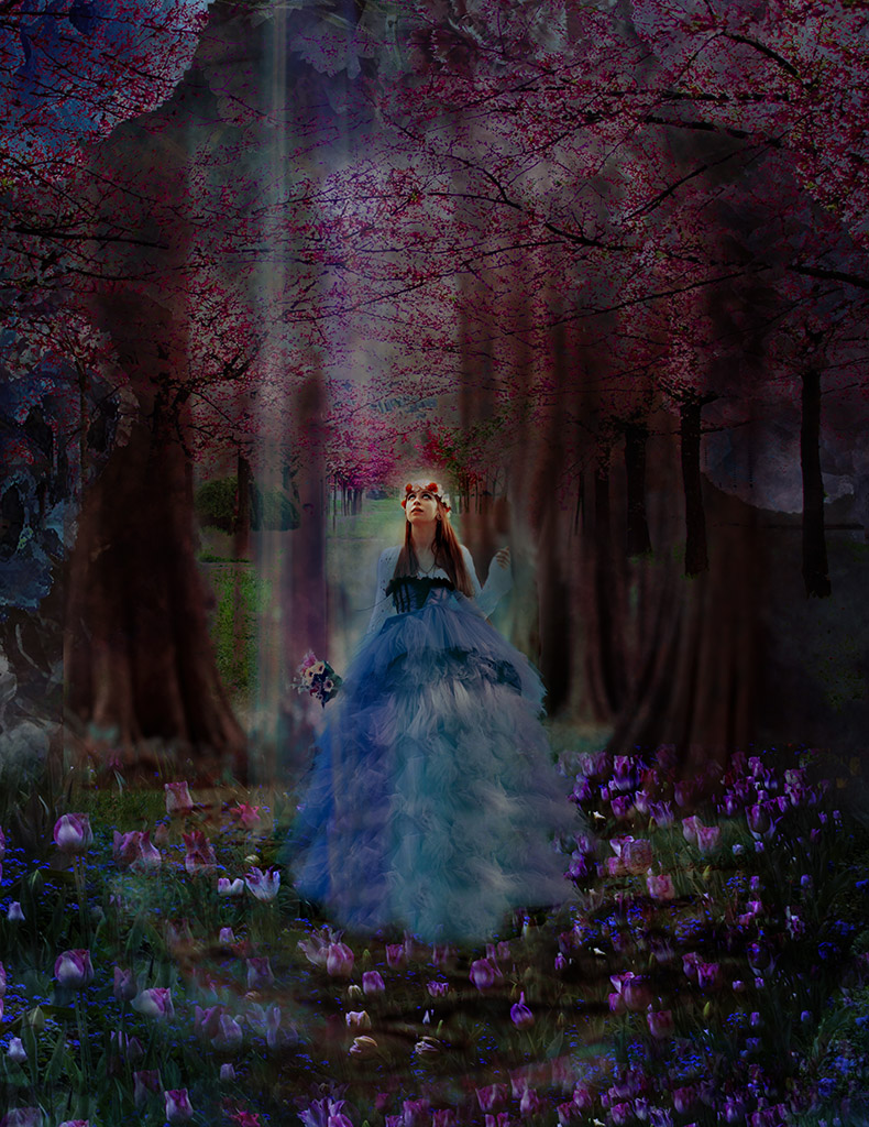 Thanks for your thoughtfulness in sharing the steps of inbedding the background. I looked back at my PSD file and I layered a background (photo of a rock with Lichen) over the model with a "lighten" blend mode. That enable the background to be seen ONLY in the models body.I then added the tree background in "difference" blend mode which amped up the colors. All together, 16 layers. I know some will groan but I love this work! |