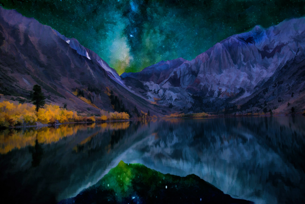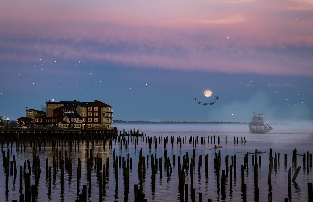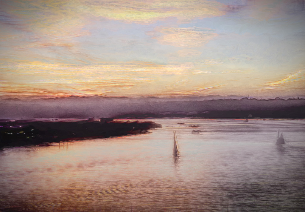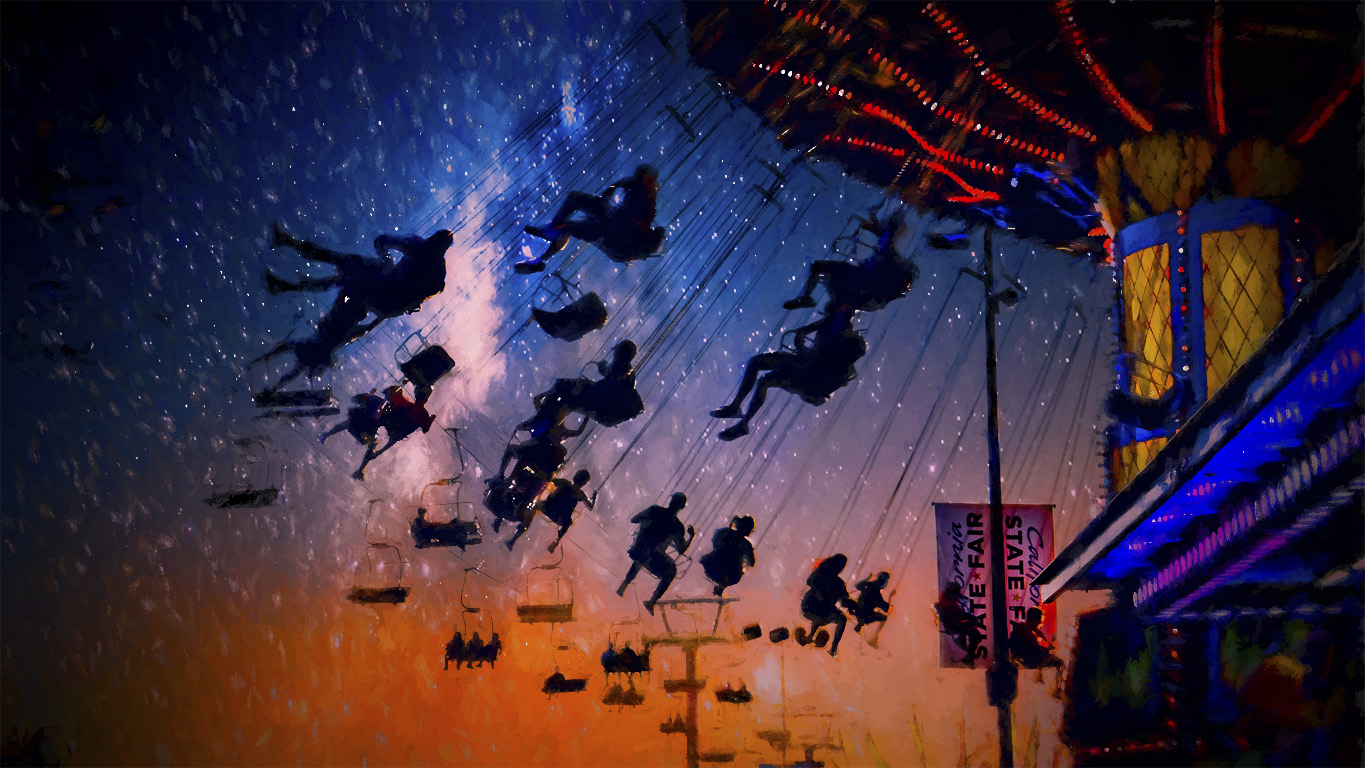 I wonder about the "fringing" on the trees. Was that intentional? If so, great, it adds to the unreality of the scene.