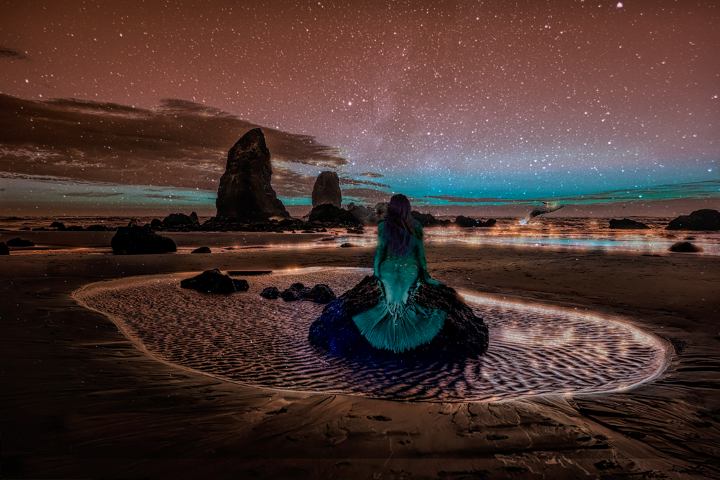 This is an amazing work of art Peggy! I really like all the choices you made from the composition to the color palette, the subtle texture and the choice of composite photos. The addition of the sand to ground the "flower" is perfect.